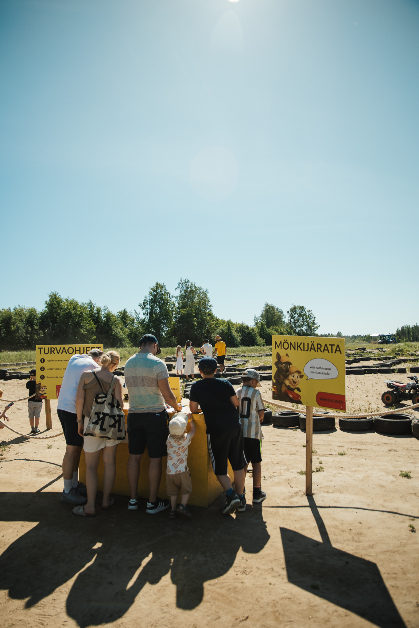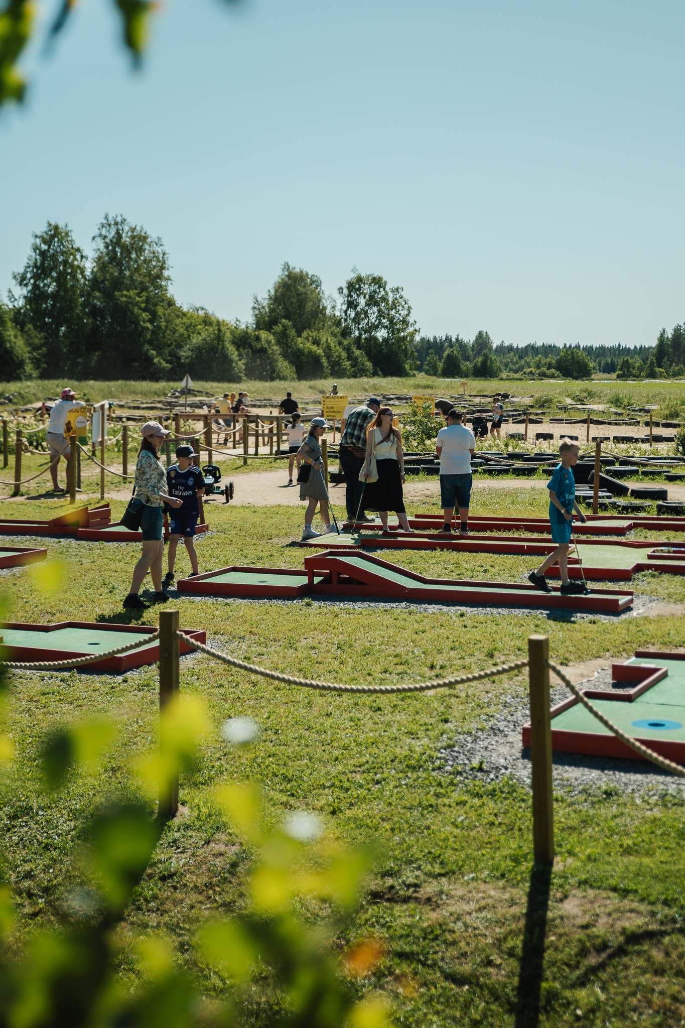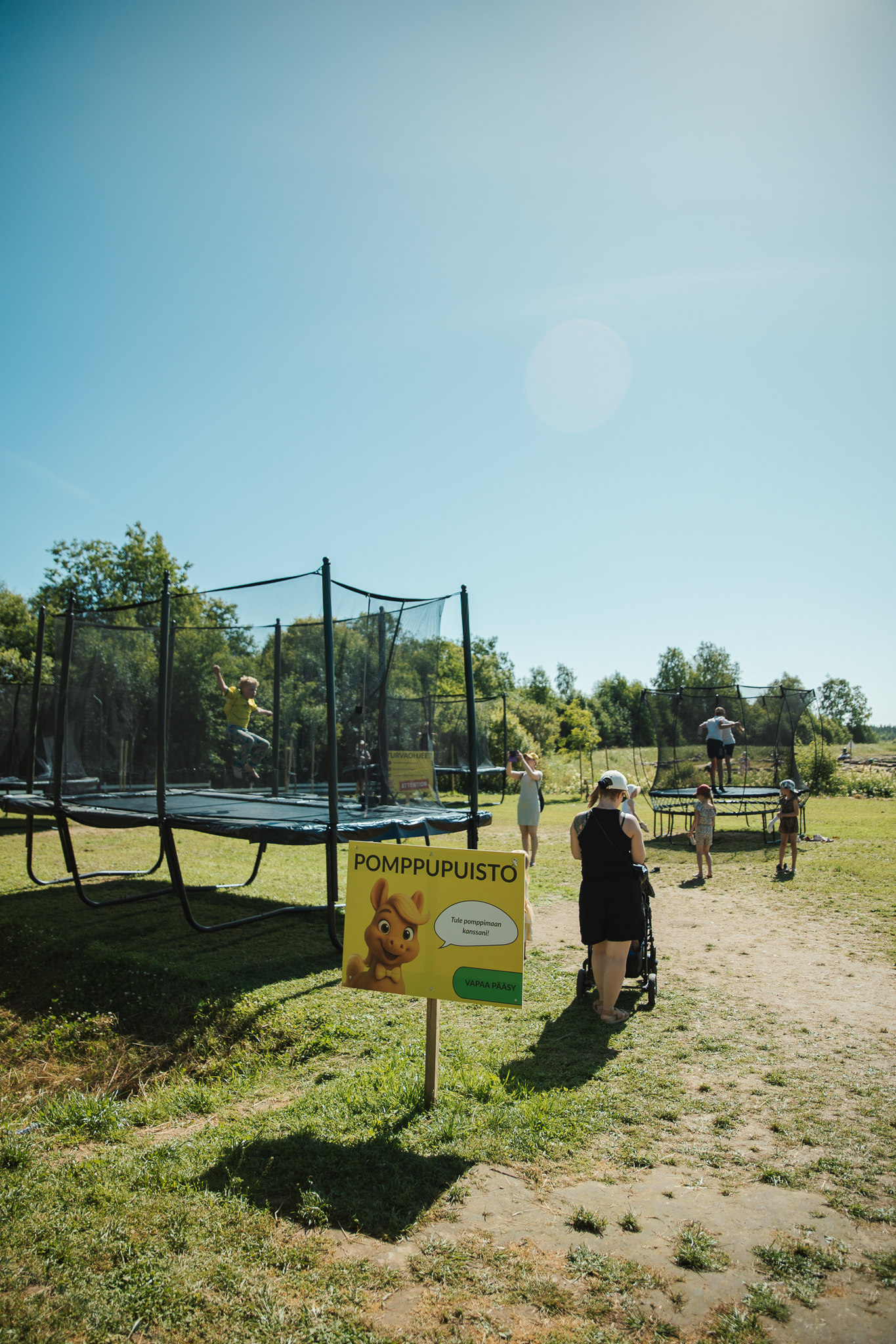 • Pelialue: Nerf-ammuntaa, jättihuojuvatorni, renkaanheitto, minikoripallopeli, keppihevosrata, frisbeegolfkori sekä jääkiekon laukaisupiste
