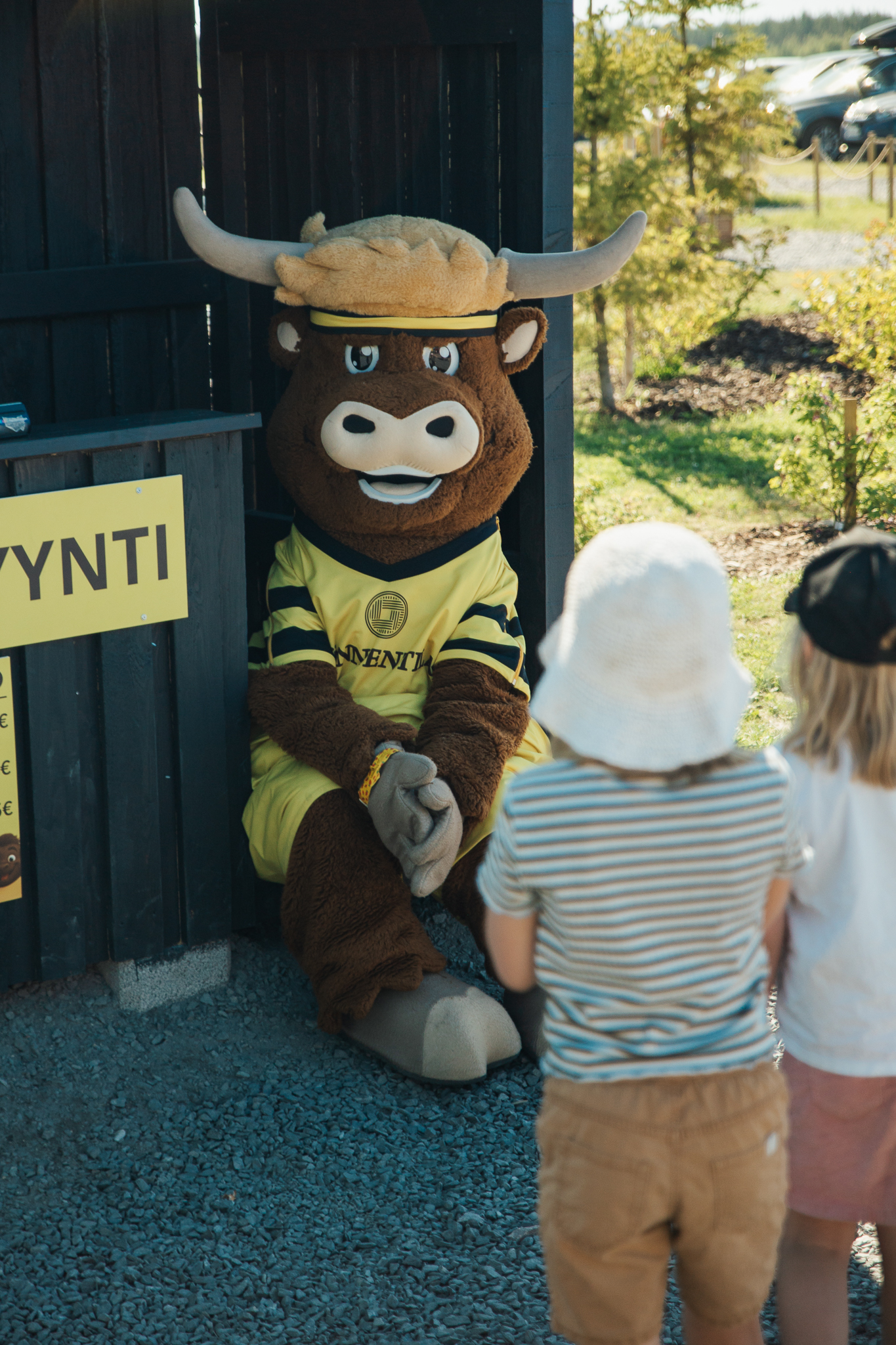 Läpi kesän Bison-maskottimme ilahduttaa lapsia läsnäolollaan.