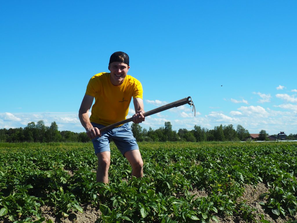 2018 tulee kuluneeksi 30 vuotta siitä, kun Lännentilalla aloitettiin varhaisperunan nostaminen ikiaikaisella nostomenetelmällä (mies ja kuokka)