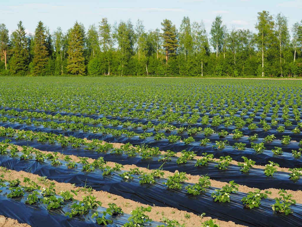 Keväällä 2018 Lännentilan pelloille istutettiin käsin 113 000 mansikantaimea